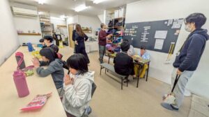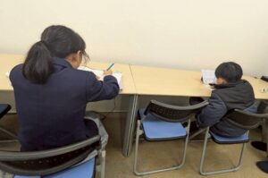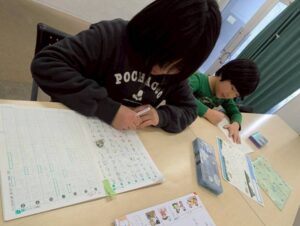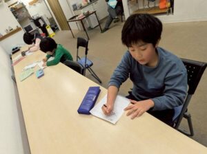 室内で宿題に取り組む児童も多かったです。